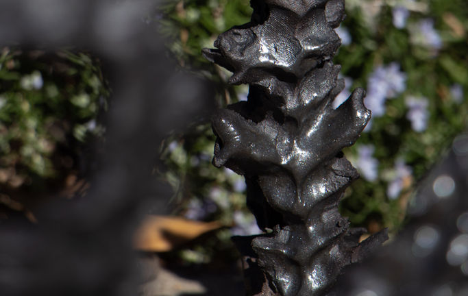 From the soil of silence rise 'les fleurs de la mort' - the flowers of death, flowers of the dead. Formed in dark clay and veiled in ebony glaze, they hold the tension of shadow and light, of body and ghost, memorial and memoriam.